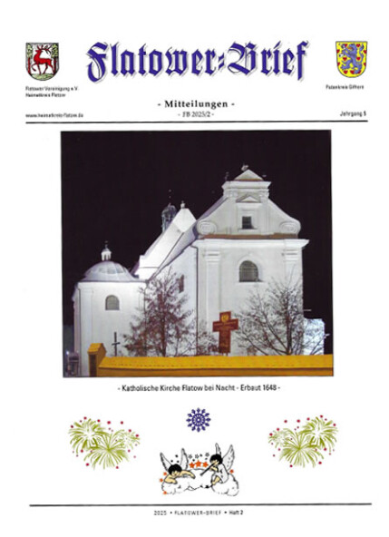 Weihnachten 2025 und der Jahreswechsel stehen vor der Tür. Wir haben vom Vorstand im Herbst noch in Gifhorn, unserem Patenkreis, getagt und am Volkstrauertag einen Kranz in der Kapelle des Gifhorner Schlosses niedergelegt und unserer Verstorbenen gedacht. Auch dürfen wir recht herzlich von der Weihnachtsfeier der deutschen Minderheit in Flatow grüßen, wo wir präsent waren. In Gifhorn wurde der neue Landrat Philipp Raulfs in sein Amt eingeführt. Wir wünschen ihm alles Gute für die vor ihm liegenden Aufgaben. Der Flatower-Brief sollte noch rechtzeitig zum Fest erscheinen. Ihnen allen frohe und besinnliche Feiertage und einen guten Rutsch ins Jahr 2026.